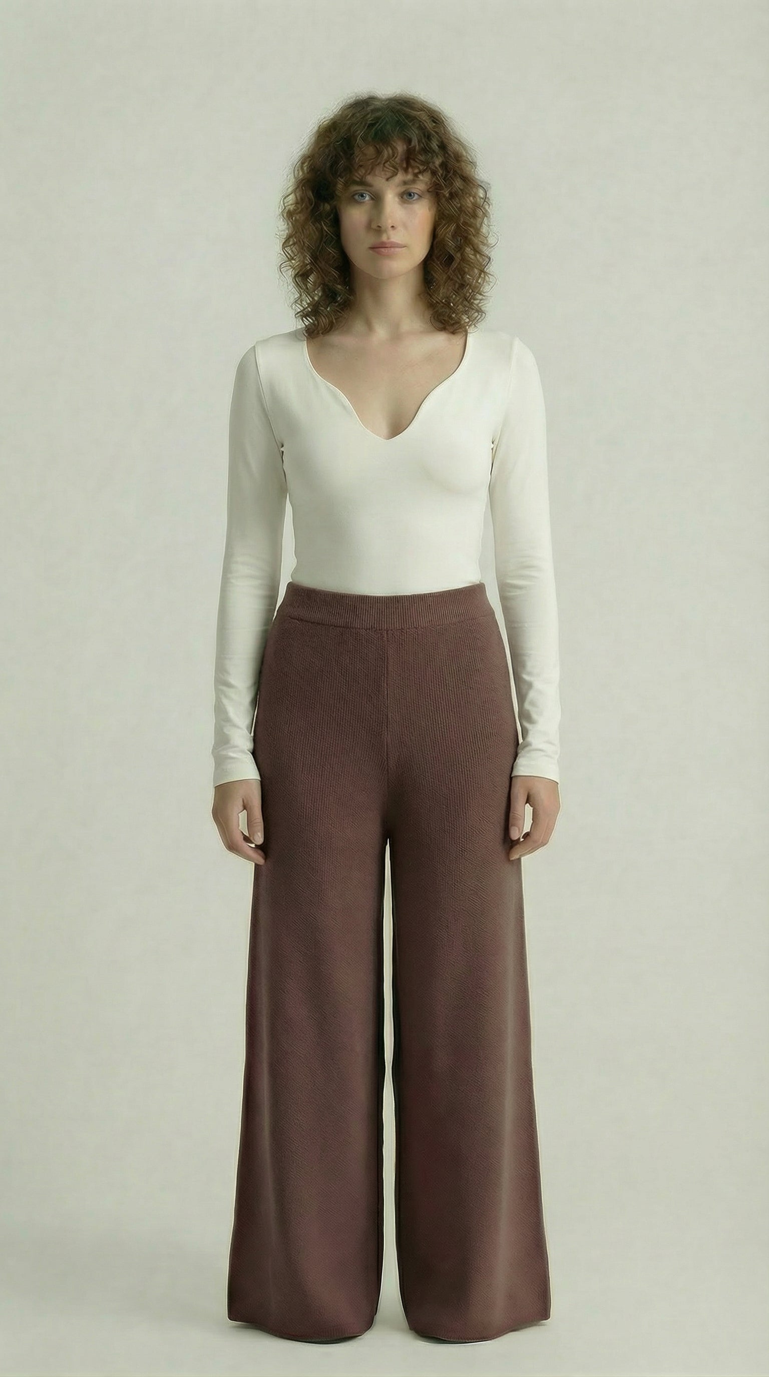 Chocolate Brown Knitted Wide-Leg Pants